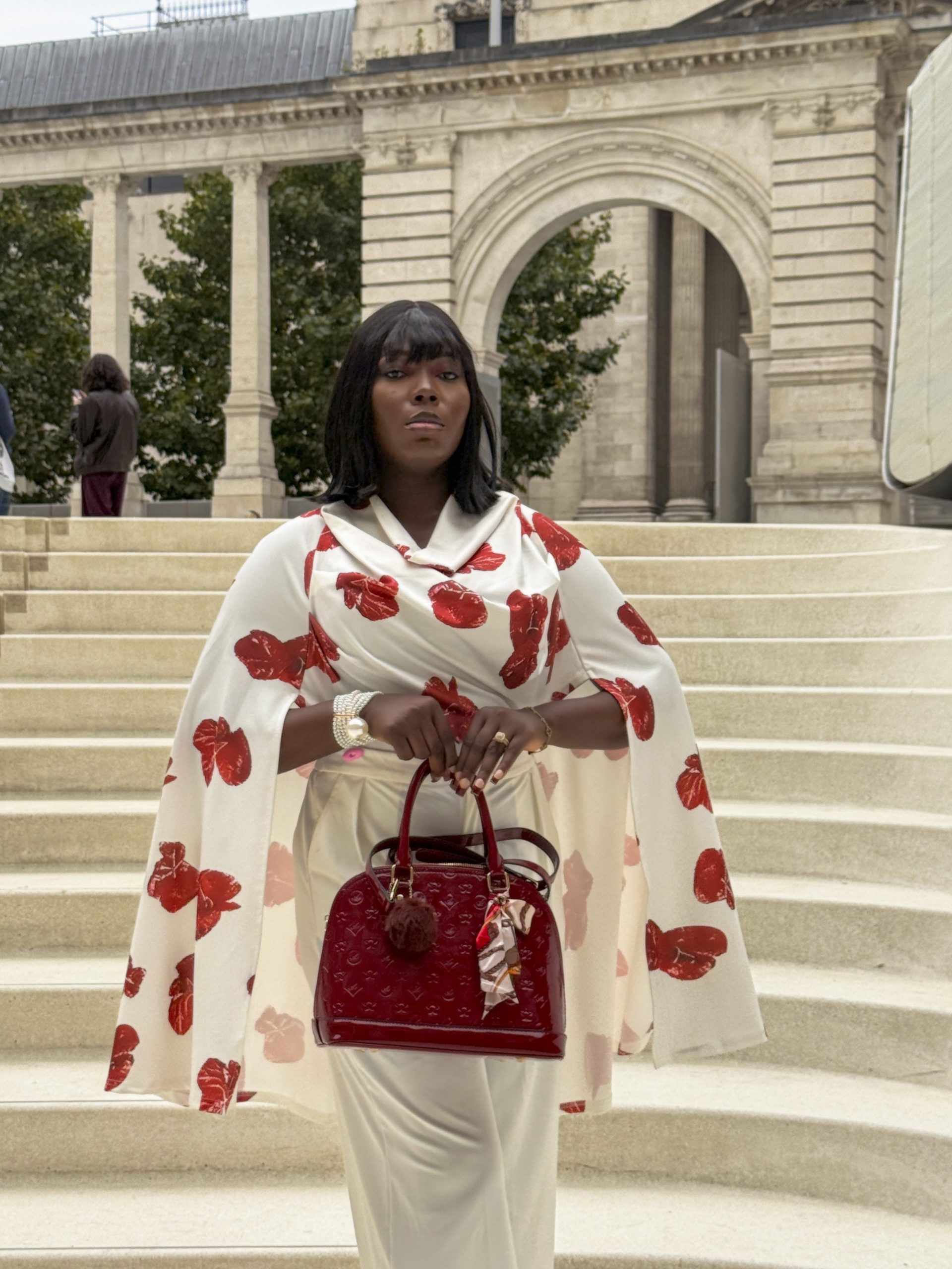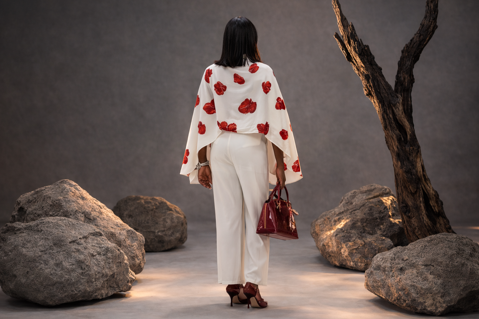 - Statement cape silhouette with fluid movement